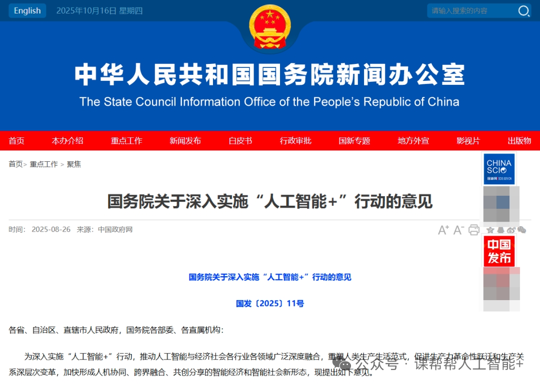 近年来,国家进一步推动“人工智能+”与民生领域的深度融合。国务院发布的《关于深入实施“人工智能+”行动的意见》强调AI要与各行各业结合,为教育创新提供了政策支持。
