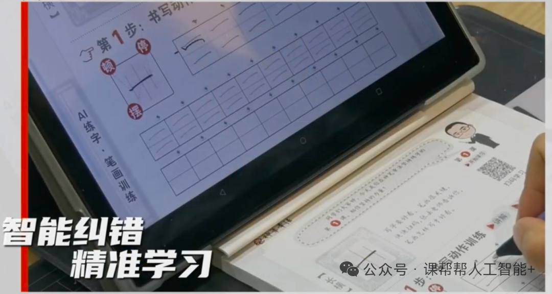 课帮帮AI练字馆的核心突破在于其“纸屏同步”技术——学生在专用纸上书写,笔迹实时同步到屏幕,AI系统即时分析书写过程,提供精准反馈。这一创新解决了传统书法教学“只能看结果、无法追踪过程”的难题。
