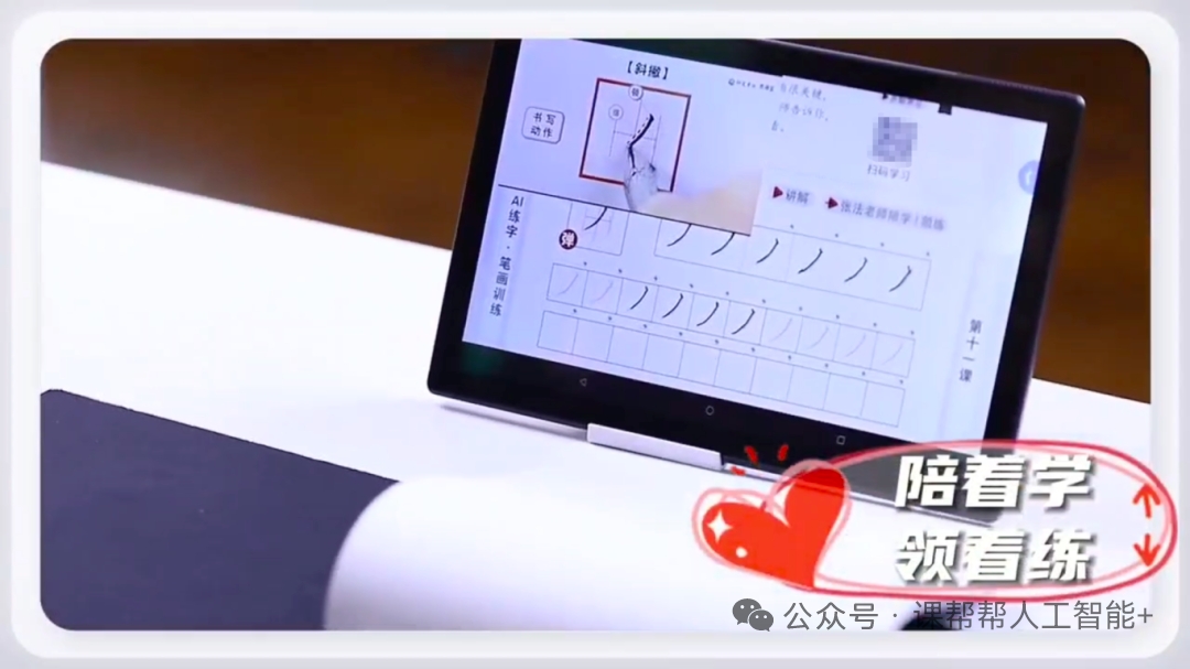 课帮帮AI练字馆的核心优势源于其技术创新。系统通过智能设备采集书写数据,实现实时可视化反馈,包括AI视频教学、实时评分、笔迹回放等功能。