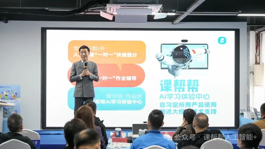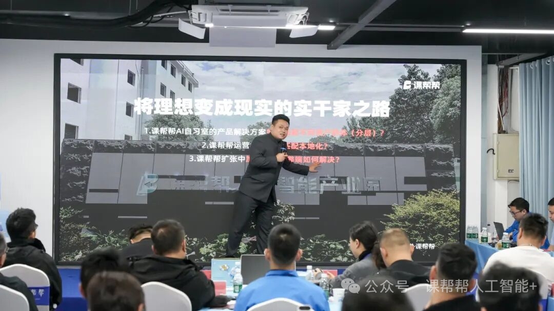 在主题论坛环节,课帮帮创始人兼董事长凤鸣老师以“AI时代的教育创新与产业未来”为题,阐述了课帮帮“技术赋能教育普惠”的企业使命与未来三年的战略规划。课帮帮联合创始人/总经理德芸老师则从商业模式角度,深度解析了“教育+”生态的运营逻辑与盈利模型,展示了课帮帮如何通过“数据驱动服务增值”实现可持续发展。课帮帮运营总裁智勇老师结合大量实战案例,分享了AI教育在全国各地落地运营的成功经验,为合作伙伴提供了可复制、可规模化的运营方案。