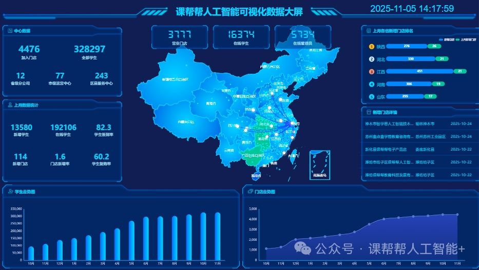 14个省级分公司的建立;4476家门店的开业;328297名学生的使用。(数据截止至11月5日)带动着一批又一批加入课帮帮的伙伴走出颓势,在经济下行的环境里,依旧游刃有余,创造出连开几家门店、几个月回本等一系列佳绩。