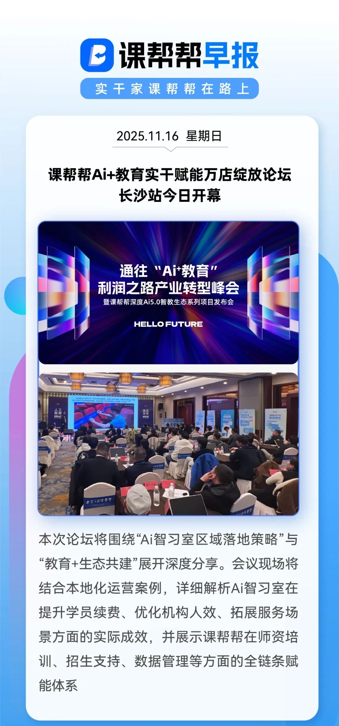 课帮帮Ai+教育实干赋能万店绽放论坛 长沙站今日开幕