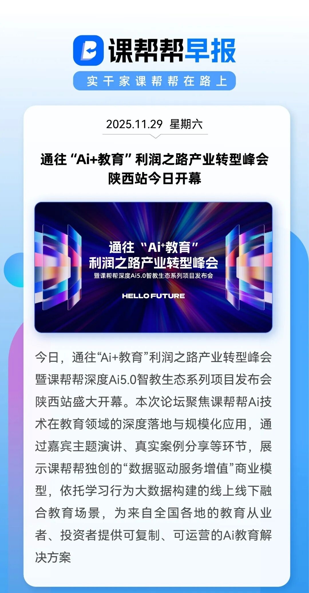 通往“Ai+教育”利润之路产业转型峰会 陕西站今日开幕