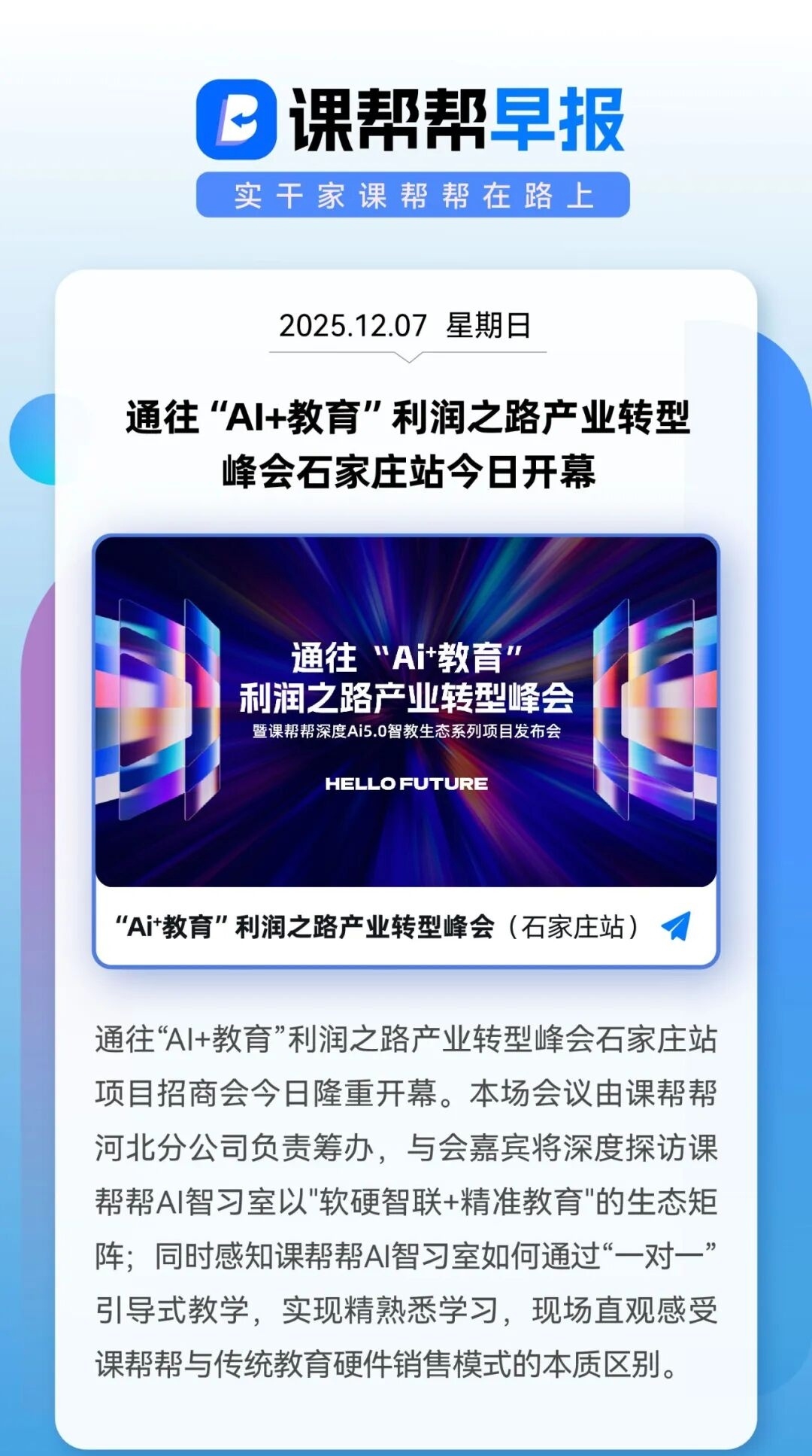 通往"Al+教育"利润之路产业转型 峰会石家庄站今日开幕 ...