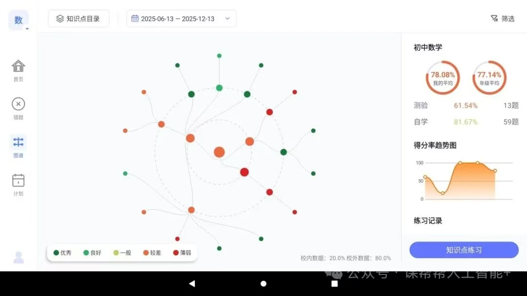 (4)知识点图谱以图谱形式呈现孩子知识点掌握情况,进行薄弱知识点的专项攻克。
