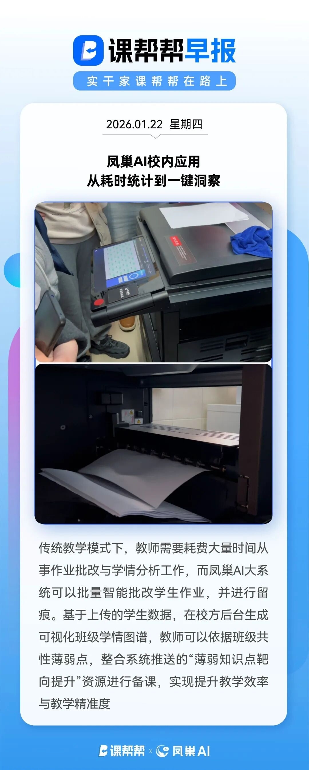 凤巢AI智能作业批改机在校测试 助力教师教学提速
