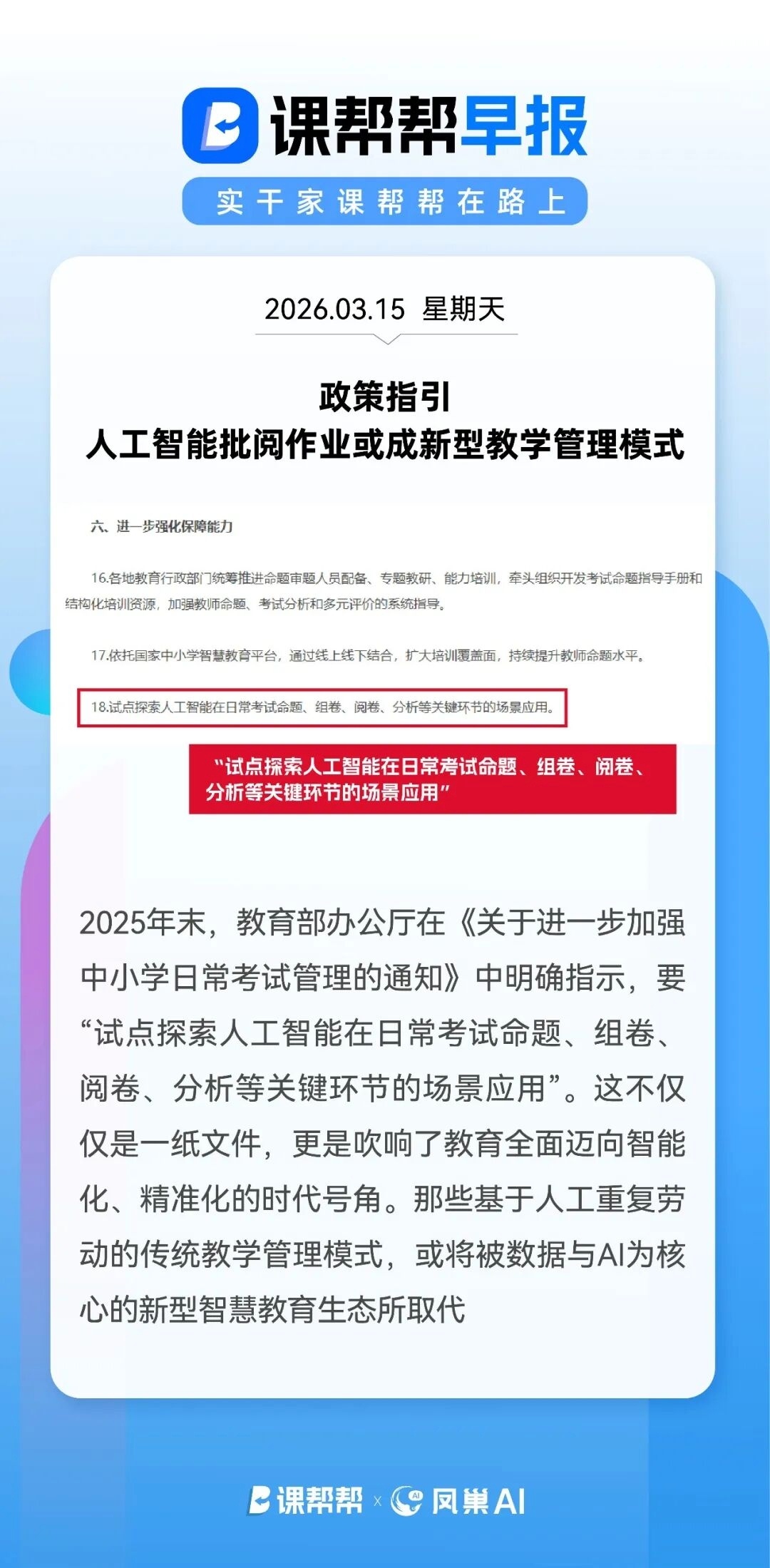 政策指引 人工智能批阅作业或成新型教学管理模式