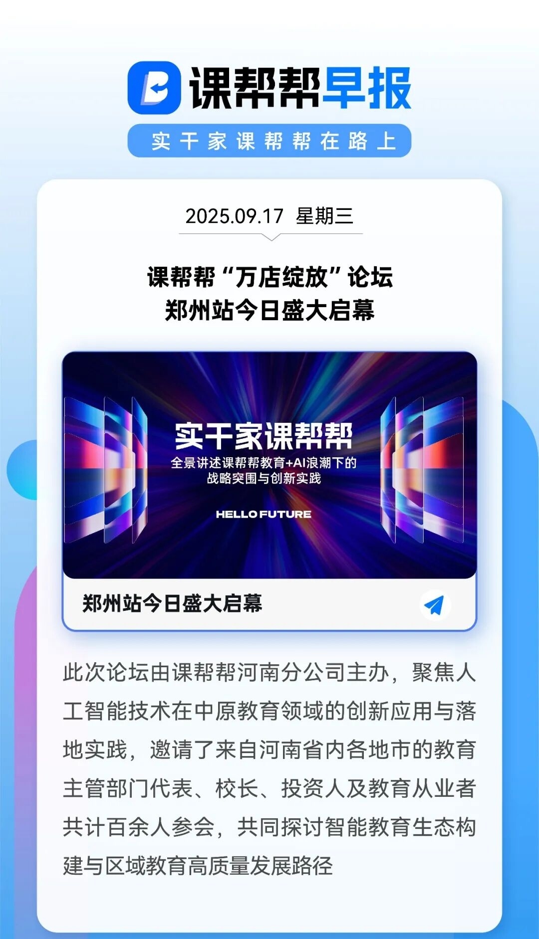 课帮帮“万店绽放”论坛郑州站今日盛大启幕